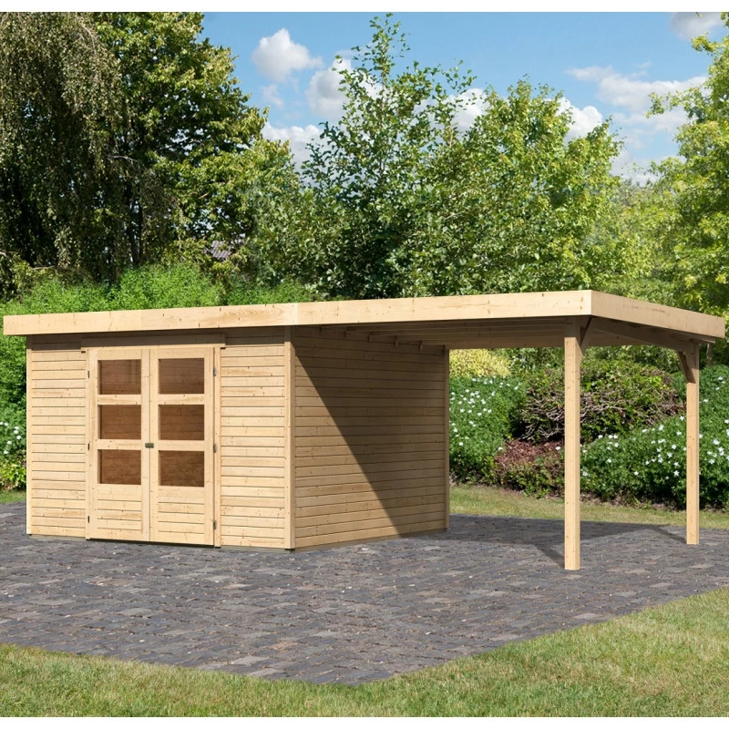 L’avis du spécialiste sur l’abri de jardin en bois massif 9,24m² Askola 6 avec grand appentis – Karibu :