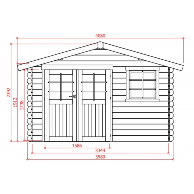 L’abri est à installer sur dalle de béton aux mêmes dimensions que l’abri au sol, soit 358×298. Les dimensions hors-tout de l’abri sont de 408x335cm, avec un rebord de toit en façade de 39cm , qui apportera une protection supplémentaire à la porte et à la fenêtre. Cet abri est réalisé en épicéa du nord, c’est une espèce à pousse lente provenant d’Europe du Nord ou de l’Est, dont les cernes rapprochés témoignent d’une grande densité et solidité. Le bois est certifié FSC, et la garantie de l’abri couvre une période de 2 ans.