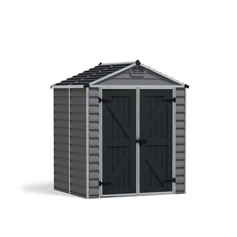 Les abris destinés au rangement du jardin, de la gamme Skylight Deco de Canopia by Palram combinent fonctionnalité et esthétisme, et cet abri de 2,65m² avec ses dimensions de 154x186cm vous ravira, avec ses tonalités de gris anthracite sombre pour le toit et la porte et gris clair pour les parois.