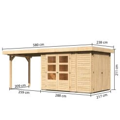 Abri De Jardin En Bois Massif 6,55m² Askola 4 Avec Appentis 240cm Et Paroi Arrière – Karibu