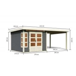 Abri De Jardin En Bois Massif Gris Terre 8,88m² Kandern 7 Avec Appentis 320cm – Karibu