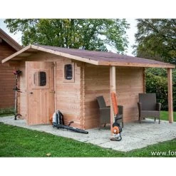 Abri En Bois De Douglas DOMMAR 18,90m² Madriers 28mm + Couverture Onduline – HABRITA