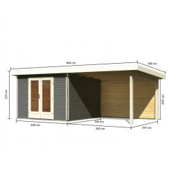 Abri Toit Plat 9,55m² Bois Massif Gris Terre 40mm Northeim 3 Avec Appentis 330cm – Karibu