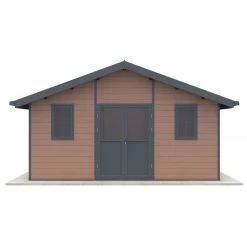 Abri De Jardin En Bois Composite 28mm Aspect Bois 14,90m² PREMIUM Toit Plat – Woodlife Garden