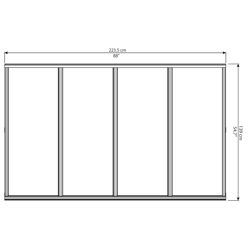 Alliant grande élégance et fonctionnalité, l’auvent Bordeaux™ 2230 de Canopia by Palram est aussi un produit de grande qualité et très solide. Des bras de support, peints en blanc par poudrage pour résister à la rouille, soutiennent un cadre en aluminium contenant les panneaux de acrylique transparents de 3 mm d’épaisseur.