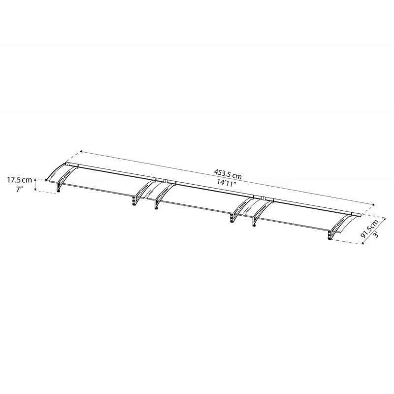 L’auvent AQUILA™ 4500 de Canopia by Palram, d’une longueur de 450cm, se compose de trois modules de base unis par deux kits de connexion. Pour apporter un beau cachet à une façade comprenant deux portes, cet auvent, avec bras de support en acier galvanisé peints par poudrage, est une solution idéale.