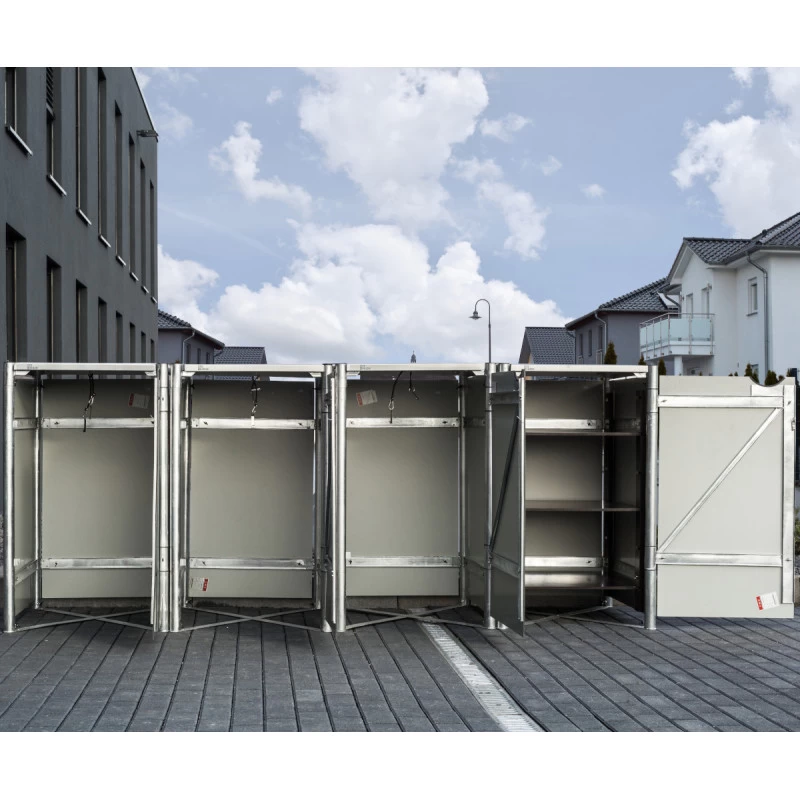 Avec ses 4 compartiments, le cache-poubelle Hide vous permettra de pratiquer un tri sélectif en un simple geste. Réalisé avec des matériaux de première qualité, ce cache-poubelle accueille 4 conteneurs à déchets d’un volume de 140L chacun. Le cadre est en acier galvanisé à chaud et les parois sont réalisées en aluminium composite, pour une durabilité et une solidité inégalées.