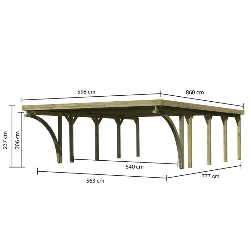 L’avis du spécialiste sur le carport double en bois autoclave 50,9m², toit en acier et deux poteaux en arc – KARIBU :