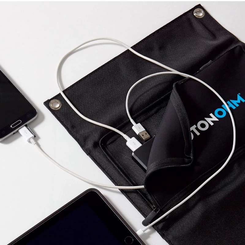Compact, léger et pliable pour un gain de place maximal, ce panneau solaire 20W Izywatt est le complément parfait pour votre batterie externe rechargeable. Doté de 2 ports USB et d’un câble, il vous permettra également de charger en direct votre portable, tablette ou autre appareil qui se charge via un câble USB.