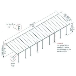 Toit De Terrasse 300x1340cm En Aluminium Gris Et Polycarbonate 8mm FERIA – Canopia By Palram