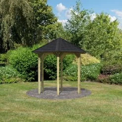 Kiosque Hexagonal En Bois Autoclave Oslo 2 – Diam. 3,70m – Avec Shingles – Karibu