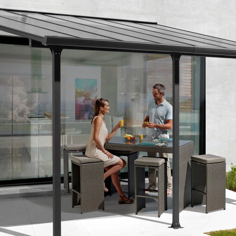 Toit De Terrasse 15,38m² Aluminium Anthracite Et Polycarbonate Habrita